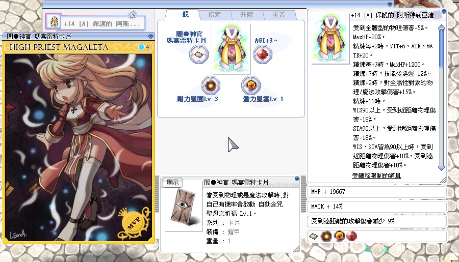 +14A 神官王 阿斯特莉亞鎧甲-LT HP+19667、抗遠9%、耐3體星1