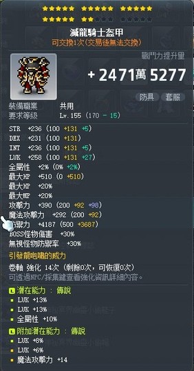 【滅龍騎士盔甲】22星 36%幸+附加14幸 雙傳盜賊用 含剪