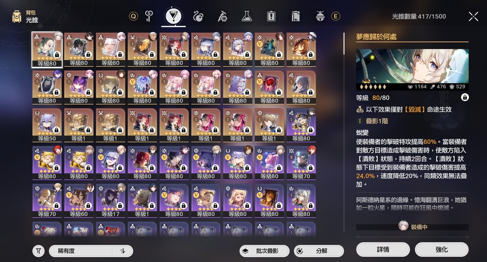 角色面板部分大畢業 其餘小畢業