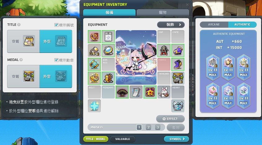 雪皮稱號/七日勳章/小屋管理人滿親密度/公會研究快滿/滿師徒/3永久經驗&3boss寵物/三個完美內潛/3個雙掉寶活動戒指/4個24H的怪物探險