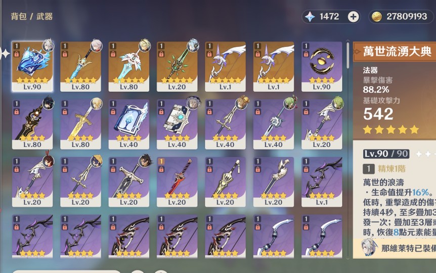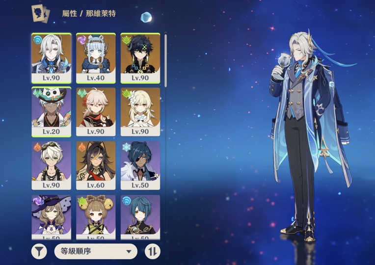 有買水龍王的衣服。打大世界小怪、聖遺物副本基本上都沒問題,最近還幫水龍王抽了伊涅芙。
