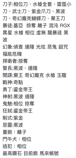 物品種類: 帳號
