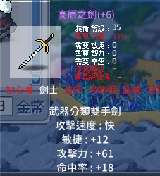 +6高原之劍 (攻速最快,劍士唯一指定)