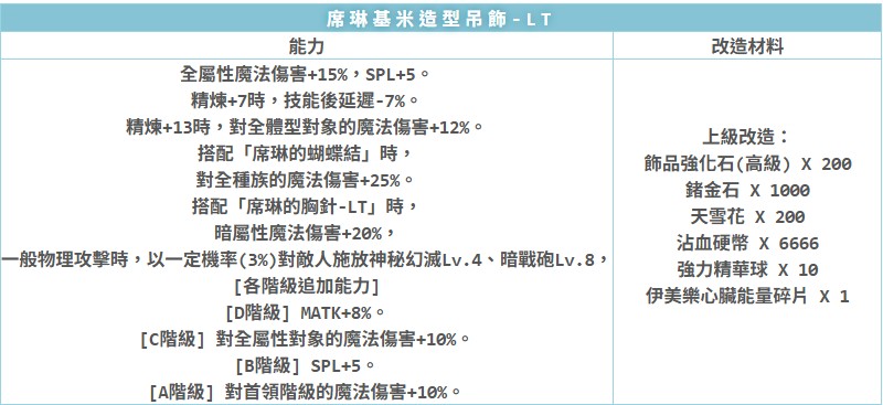 已開放「席琳基米造型吊飾-LT」裝備改造