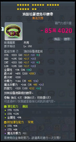 【頂級培羅德烙印腰帶】22星 33%力 附加罕見 頂培腰帶 次頂傳罕力 蓮.劍豪.劍士.力量
