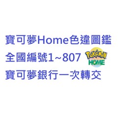 寶可夢home色違圖鑑,全國圖鑑編號1~807號,內含各種稀有配信以及色違 (部分幻獸因未開放,所以無色違)