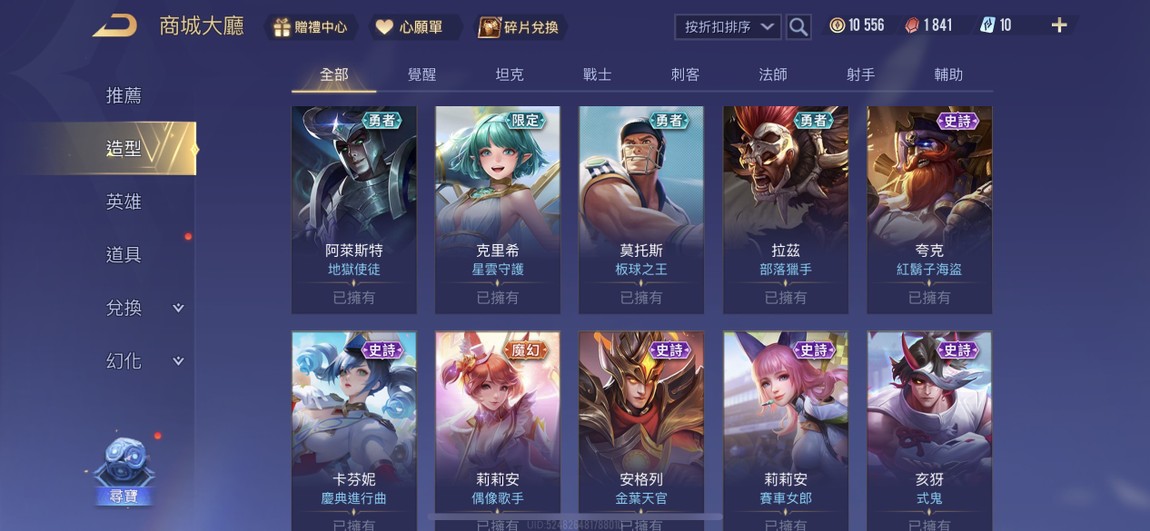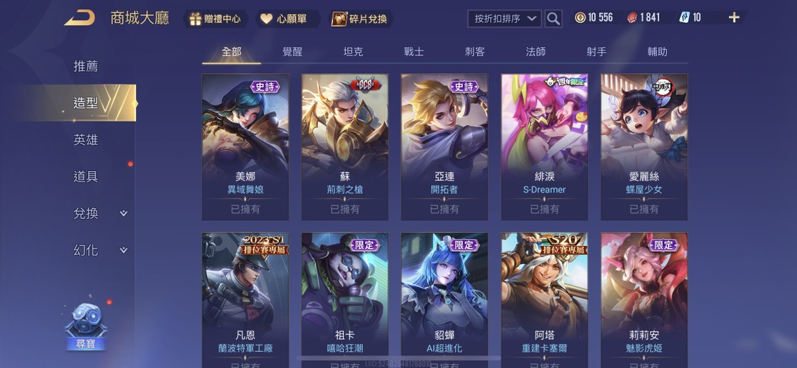 【Garena帳無綁無連、鑽石、無VIP、17英、25造】高勝小號 筱清蜜莉姆(單造型) 莉莉安魅影虎姬 堇紅蓮槍魂 限定造型20選一卡