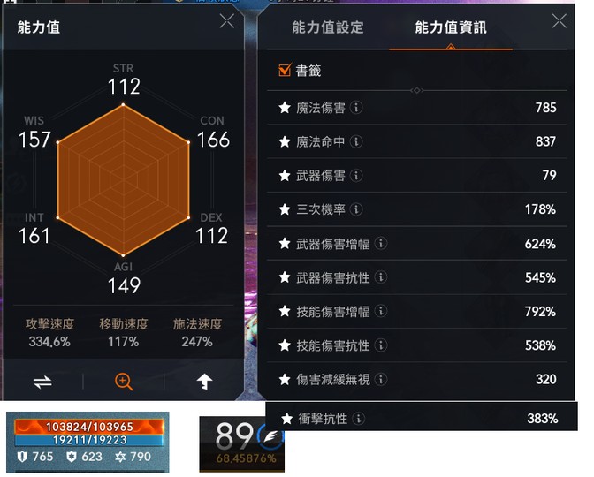★傷害穿裝:784 命中:824 技傷789、衝抗368+PVE18