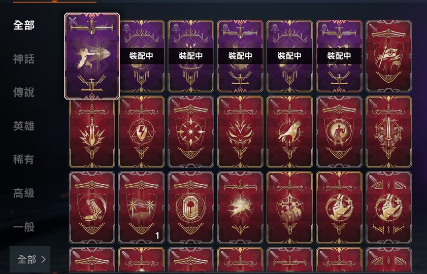 紫色共通技能:功速加持、急速詠咒、高能藥劑、推進、精神勝利、絕對精準、衝擊抵抗、抑制、精準命中、衝擊抵禦、實力記憶、昇華防護、帝國1+2