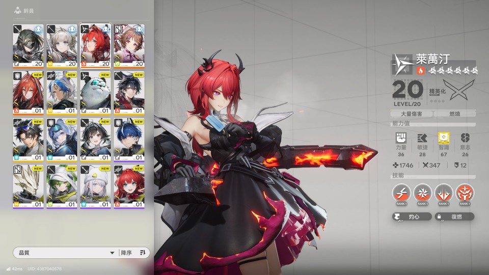 【10等、女】0+1萊萬汀(有專武)+1命小羊+餘燼+小月〃玩家自售非盤商