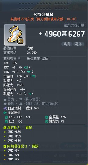 【永恆盜賊鞋】頂%幸永恆盜賊鞋/附加大三排977幸/白5/頂級星火