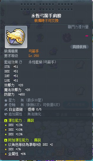 【永恆弓箭手肩膀】乾淨雙傳36%敏永恆弓箭手肩膀 附加+276大三排~