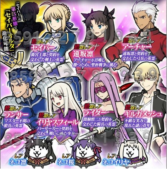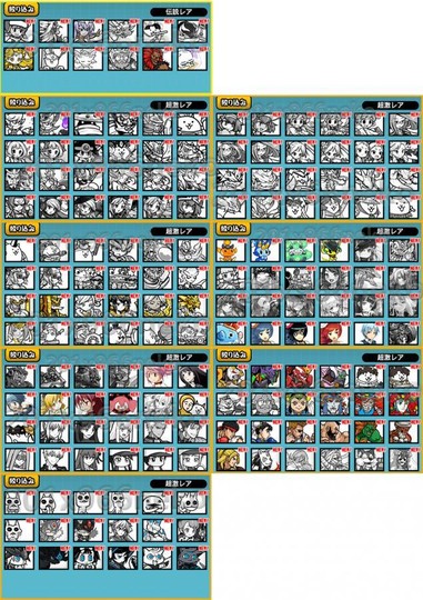 【傳説レア】系列:宮本武藏、聖女貓會長貞德、天龍城巴比貓塔、貓若丸、花漾桃子、奇幻貓、終末兵器・異滅堂、ブラックゼウス、奇幻精靈露米納、超越科學者天域博士、大地女神蓋婭、豪鬼、京坂七穂、ネコ王子、暁のイザナギ。