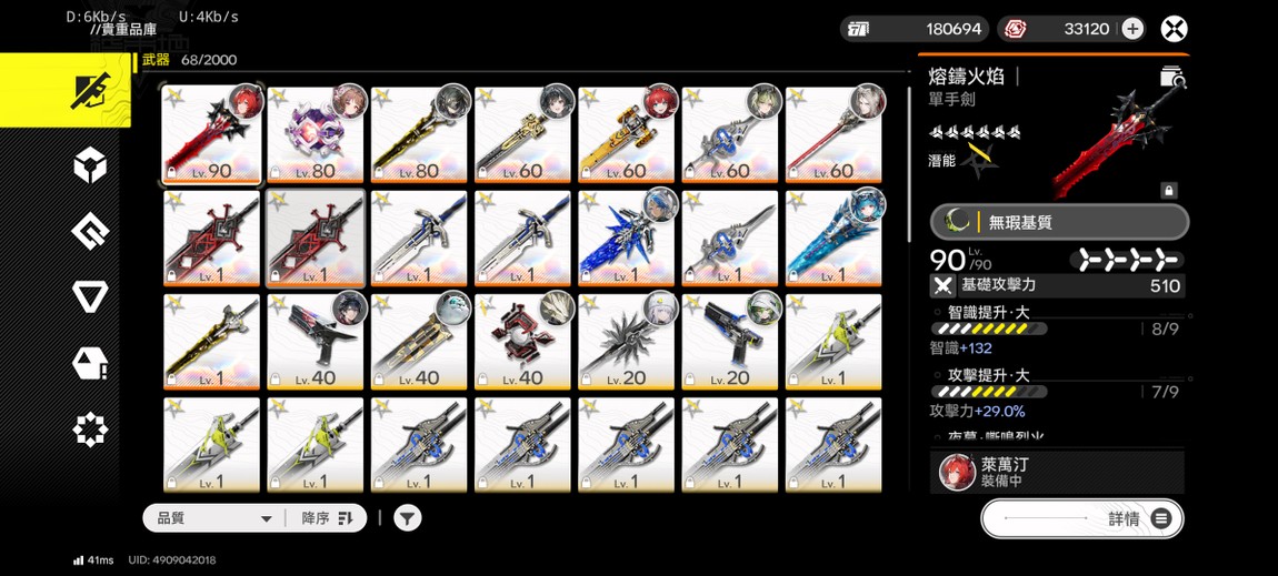 【50等、女】滿潛萊萬汀+專.駿衛+專.1潛黎風+專.別禮+專.小羊全五星滿潛 共17把6星武