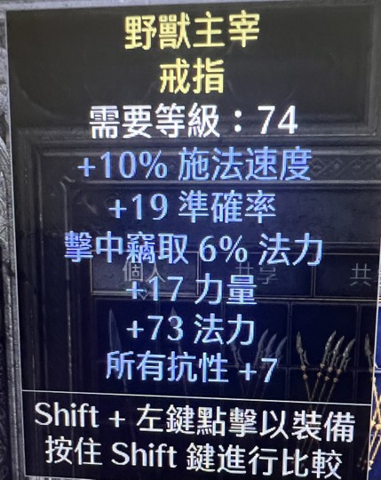 10高施19準6吸法17力量73法力7全抗 戒指/黃戒