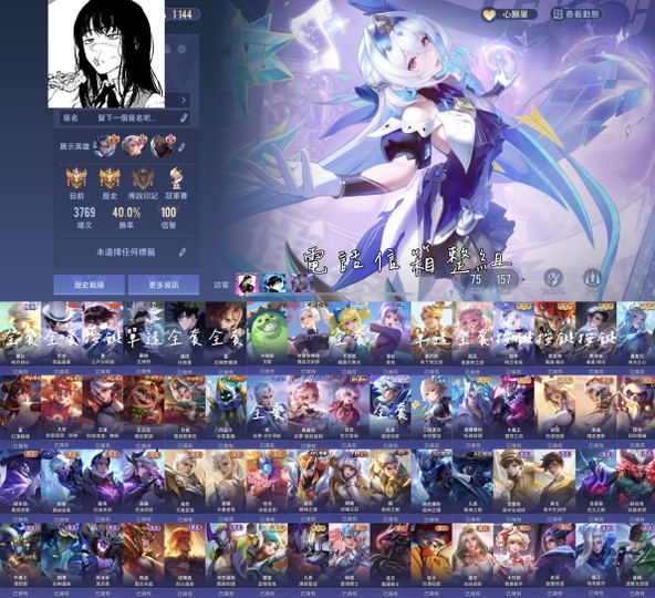【Garena帳有綁定、絕世傳說、V7、75英、157造】莫拉碎月五條伏黑釘崎基德柯南 電話信箱整組