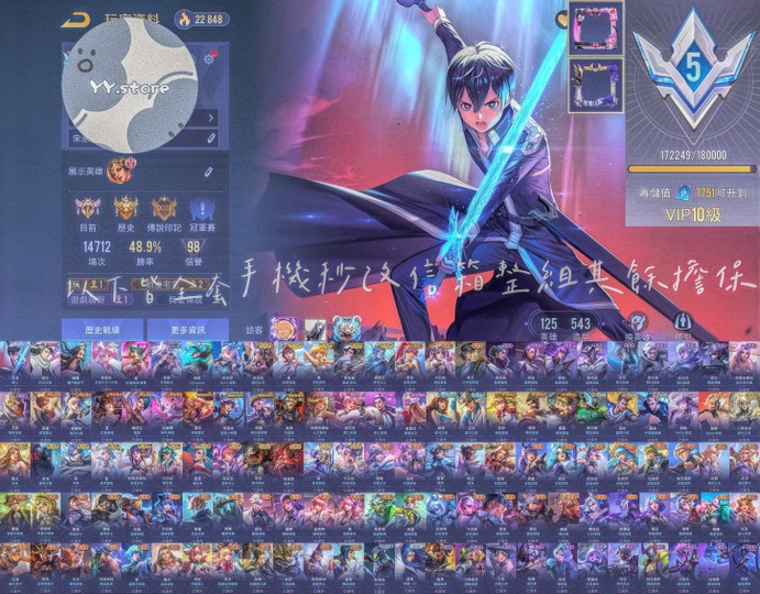 【Garena帳有綁定、星耀、V9、125英、543造】桐人2️⃣代 朽木 彌豆子 小月亮 典藏菫 月落 多抽獎 多盛典直購💫