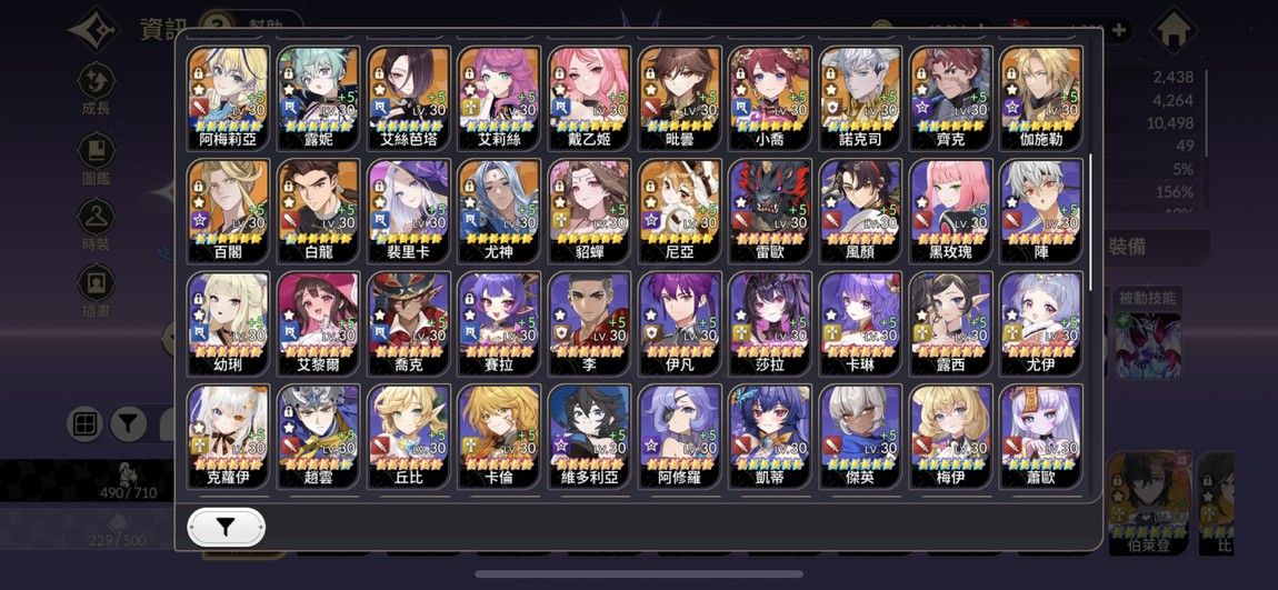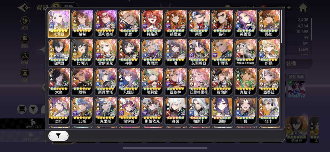 角色幾乎沒缺 pve pvp需要的都有兼顧如圖 看圖片比較快 呂布隊 悟空坦隊 法隊都有