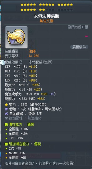 【永恆法師肩膀】雙傳22星33%智永恆法師肩膀 附加96智大雙 白3全b~