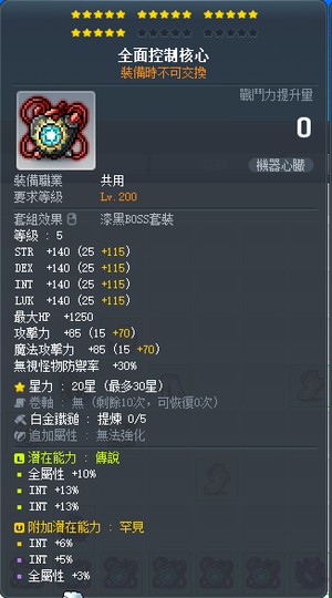 【全面控制核心】雙傳20星36%智全面控制核心 附加86智~