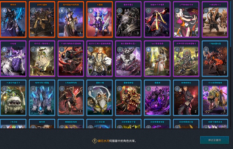 草原沙漏劍士、刺客都有50幾個,氣功30幾個。