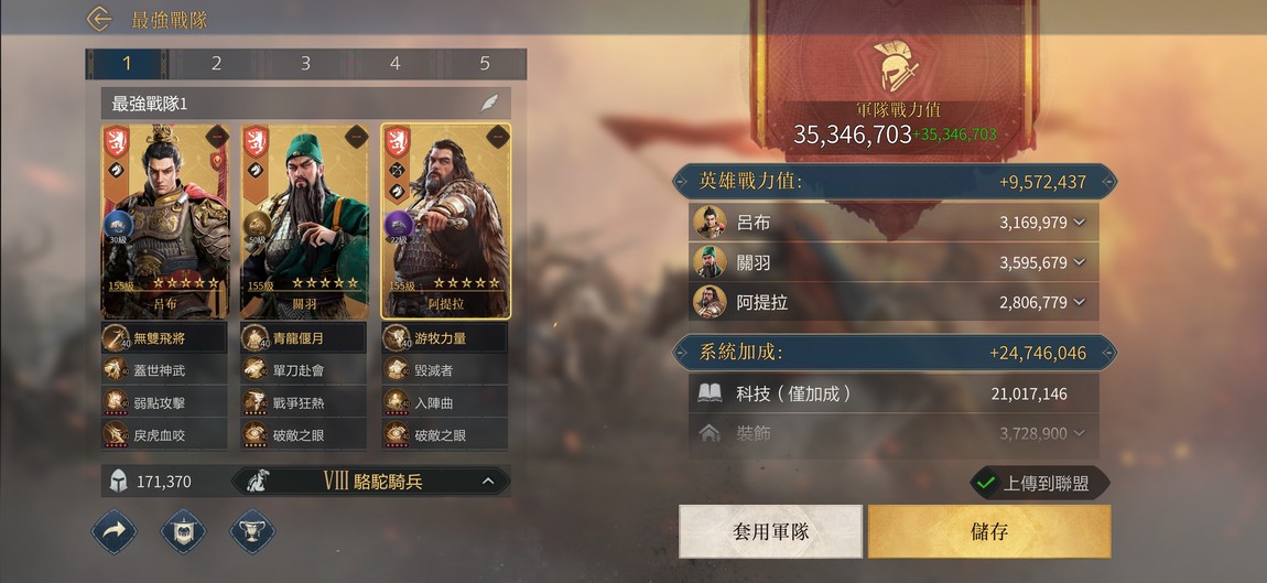 城堡等級35T8騎兵 1.6億戰力此帳號在288VIP17售此帳號附贈5千百萬戰力帳號