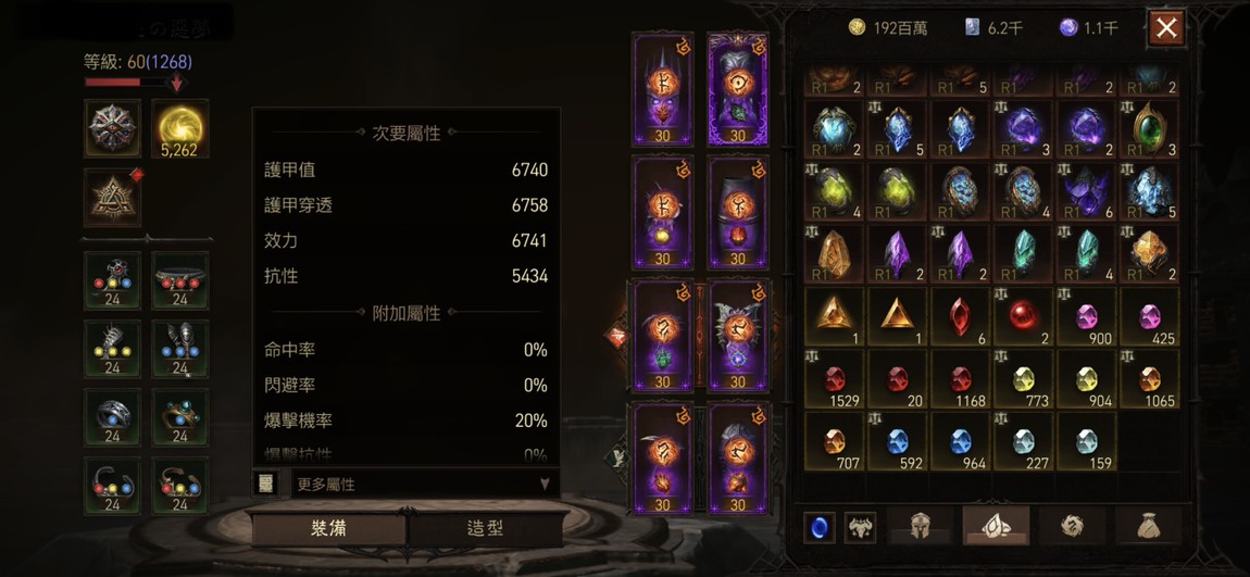 目前身上裝備及綠裝全部3+3、3+2 詞綴洗的很好,不用再洗,目前戰力在XI可打普通副本