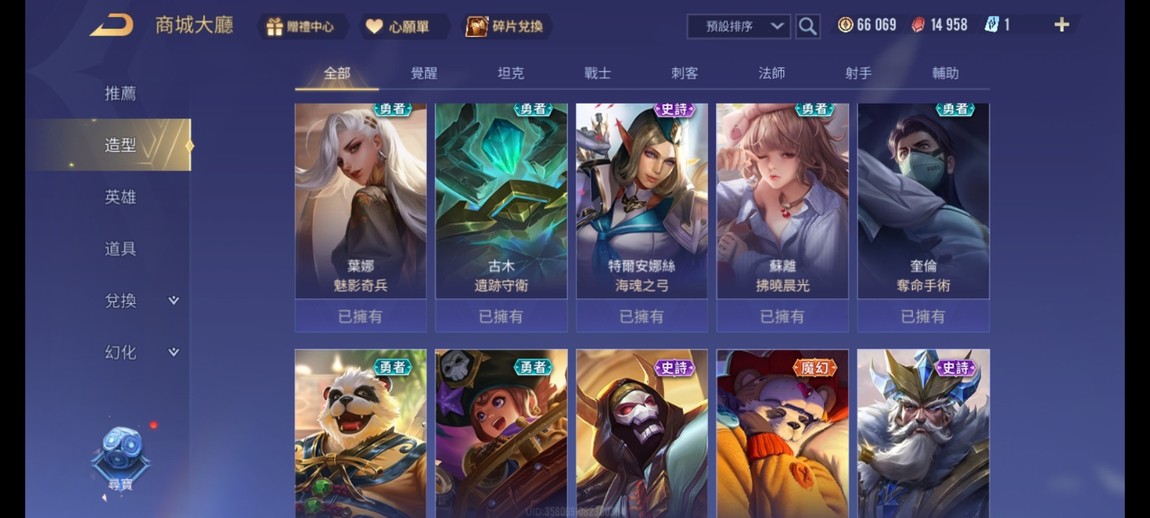 【Garena帳有綁定、鑽石、V8、104英、250造】文鰩 新年 基德 等多種好造型帳