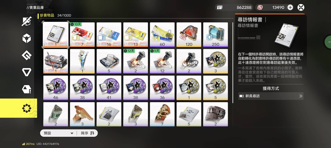 資源豐富: 內含 13,490 嵌晶玉 + 大量尋訪憑證(特許、基礎、限時),後續抽新角毫無壓力。