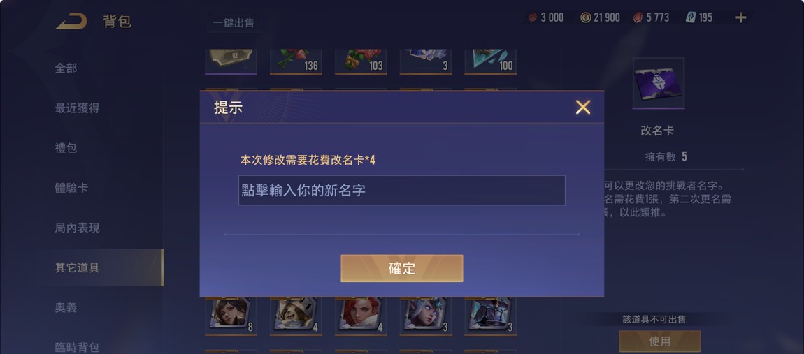 物品種類: 帳號