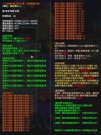 基本上啥東西都有,聖獸(含10%指環)、頂經驗武、掉落武、共鳴分頁、小屋