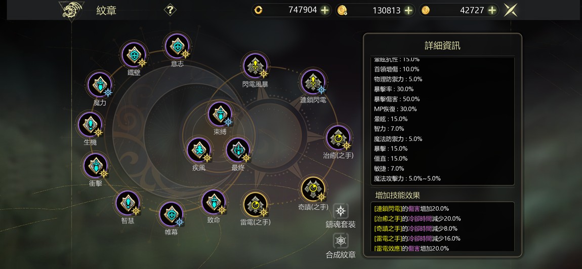 連鎖閃電40%,雷電效應50%,有多一顆雷電效應20%潛力可變更。
