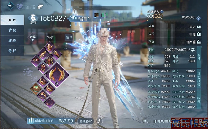 【OBNBJME068242】【江湖一夢】155082滄瀾,衣品值141825;國色值18500;已用天賞石8顆;未用天賞石0顆;天霓染0;靈韻3;館藏4級,套裝139套;【天賞髮型】:墨狩,金髮金盃錯,白髮澤明,【武器外觀】:滄波絕塵武器,雷霆武器,冰雪武器,火焰武器;【武功外觀】:輕功訣御劍;裝備特技5金;內功周天金3木1火3;【靈韻內功】:熔甲,撼金闕,斬精;莊園12級;育寵9級;【手機】