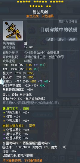 戰力1.1E 可通困七 剩一些永久裝+輪迴跟雙終