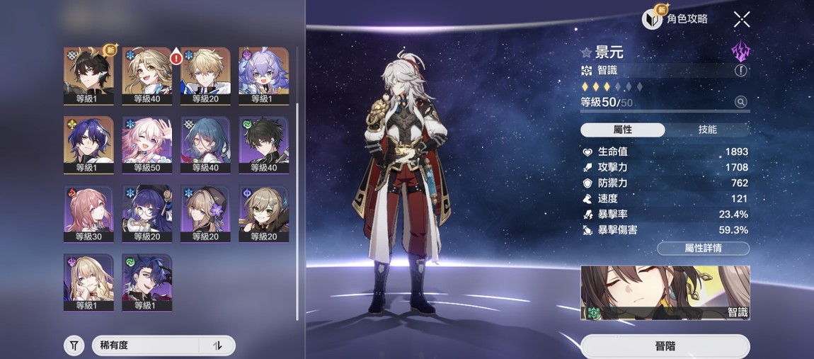 【女、37等、7金角、0金專】沒時間玩,便宜賣(1魂彥卿、景元、羅剎、5星丹恒、真理醫生、白露、傑帕德)