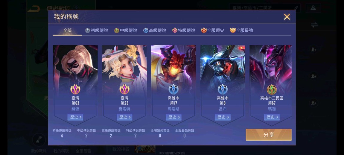 牌位vip都是歷史 奧義除了圖片那幾個都滿 造型詳細放圖片 英雄少圖片那三隻 兩個歷史紫標