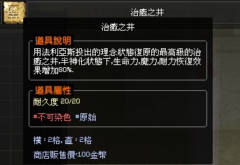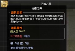 用法利亞斯投出的理念狀態復原的最高級的治癒之井,半神化狀態下,生命力,魔力,耐力恢復效果增加80%.