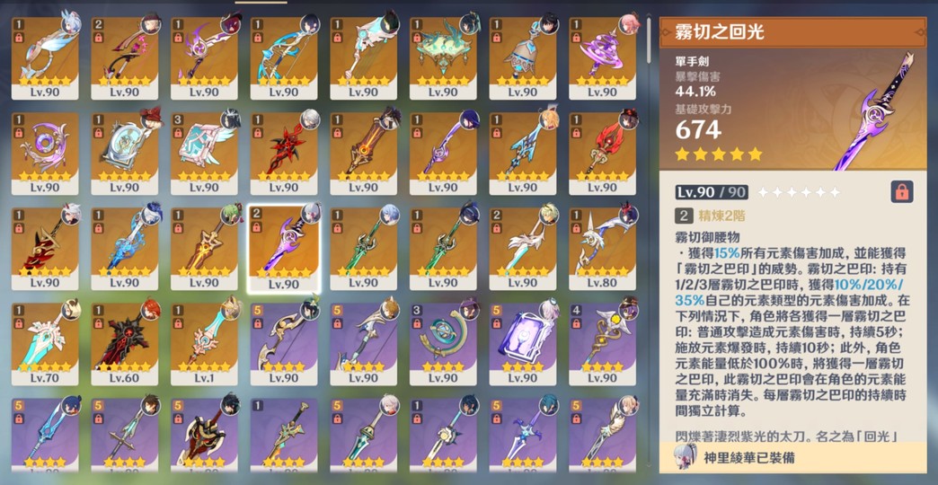 主C聖遺物幾乎都是畢業/大畢業程度 以前很用心在玩