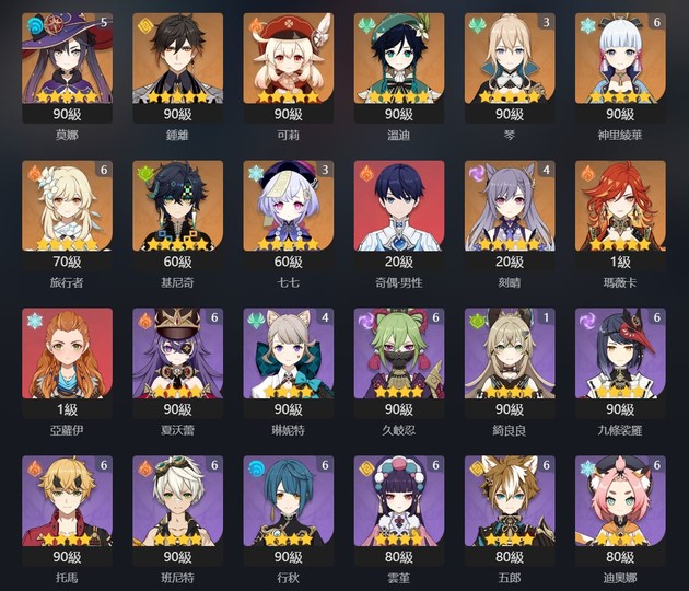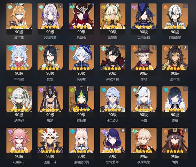 【女、60等、36金角、27金武】滿命雷神 滿命神里 2命僕人草神夜蘭茜特菈莉 肯德基翅膀 萊歐愛可菲 畢業聖遺物