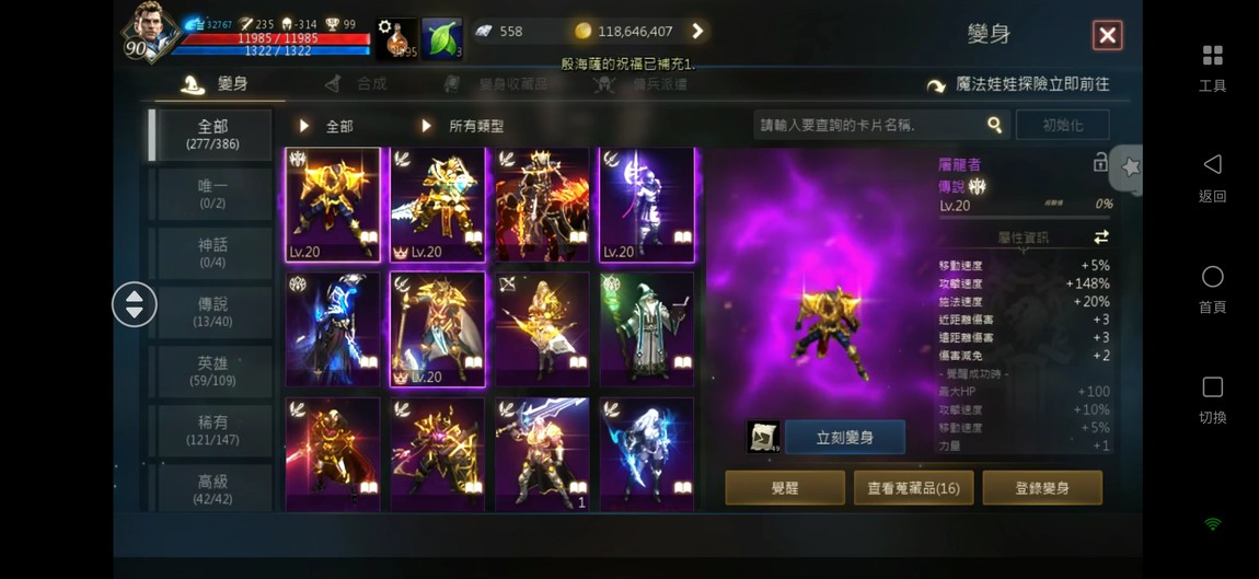 【騎士、90等、大移民】賣90級60%金娃騎士,1金技(金暈)滿紫技(有商城)滿紅技、重複1紫技