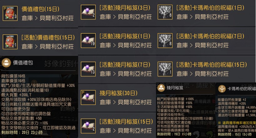 價值/殘月/卡瑪 已開剩餘20日/15日/15日 1/30日算起