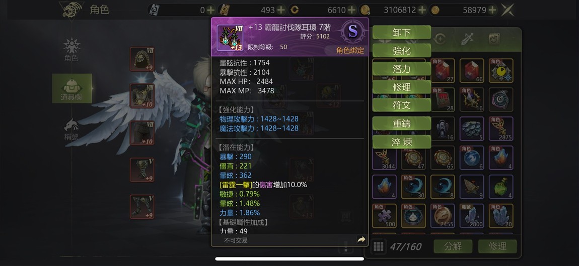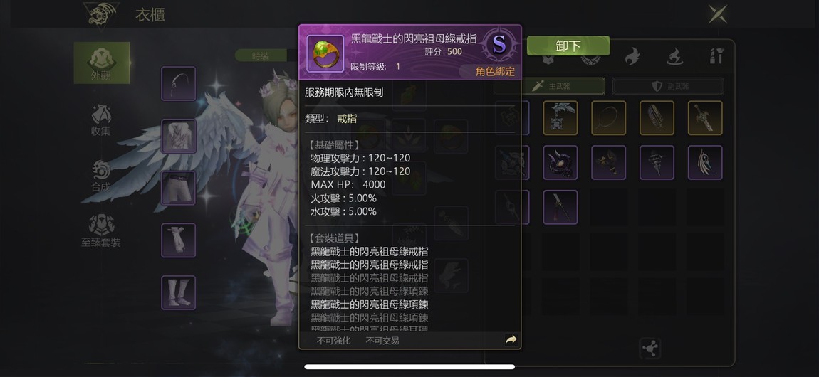 4S飾品(光暗戒)(水火戒) 潛力數值如圖 圖鑑等級131(L圖鑑1張貝斯柯德)
