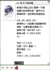 +10影子大師神盾DEX+5+9影子大師手套DEX+5/+19影子大師套
