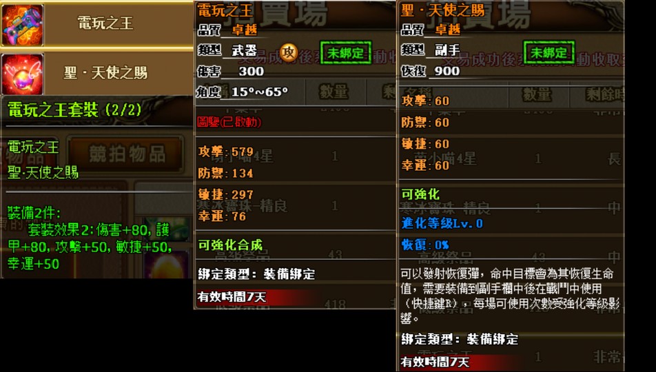 謎之影電玩之王套裝300傷害武器、副手聖天使之賜