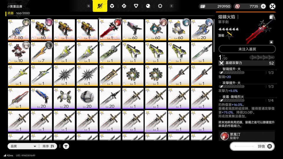 【50等、女】M1 伊馮1潛(稀有)、萊萬汀+專武、黎風、艾爾黛拉1潛、多抽數/多武配/高練度