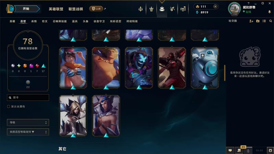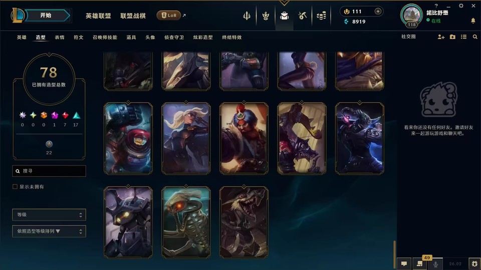 英雄聯盟台區lol台服78皮膚156英雄LOL台服【未綁信箱】