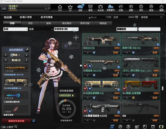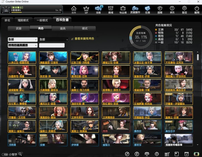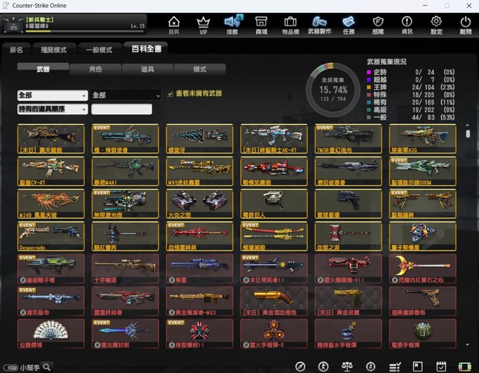 【0史詩武器、24王牌武器、33王牌角色】CSO帳號Lv25|未日AK47、未日神聖武器|人魚公主、爆破之花、艾莉克|多E