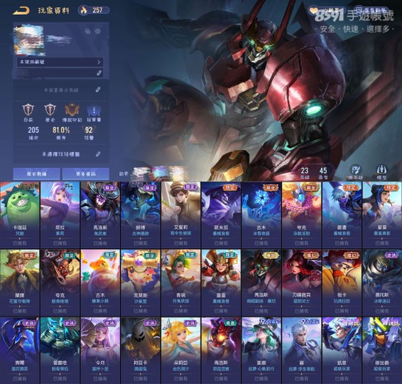 【黃金、無VIP、16英、22造】無無輔助簡帳 造型20選1 可議