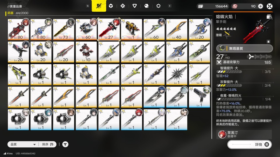 【50等、女】M3 萊萬汀+專武、潔爾佩塔、餘燼、黎風、艾爾黛拉|額外7把六星武器|雙倍皆在