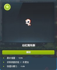【幼紅獨角獅萌獸】★唄唄★萌獸➵『20%終傷14%物攻被動+2』終物被動
